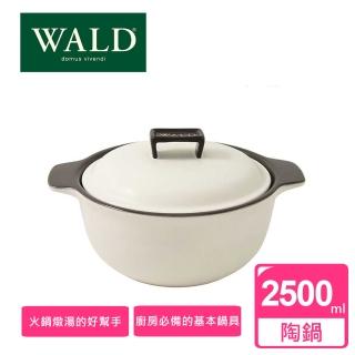 【義大利WALD】實用雙耳24CM陶鍋附鍋蓋-粉白(陶鍋)