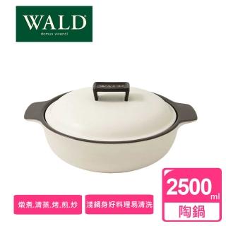 【義大利WALD】實用雙耳28CM淺墩鍋附鍋蓋-粉白(陶鍋)