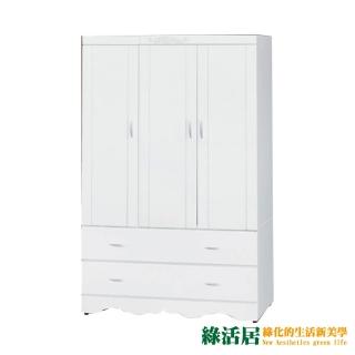 【綠活居】卡比夫 法式白3.8尺三抽衣櫃/收納櫃(吊衣桿)