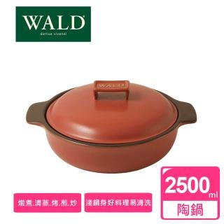 【義大利WALD】實用雙耳28CM淺墩鍋附鍋蓋-磚紅(陶鍋)