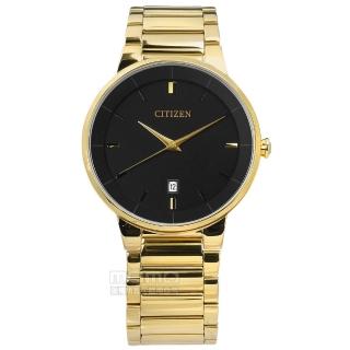 【CITIZEN 星辰】極簡設計 立體刻度 日期視窗 日本機芯 不鏽鋼手錶 黑x鍍金 40mm(BI5012-53E)