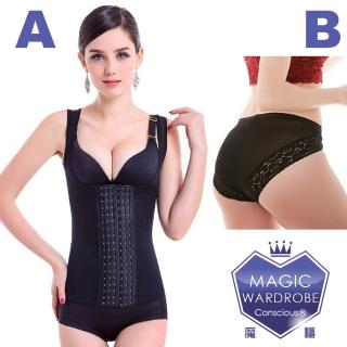 【MAGIC WARDROBE 魔櫃】買一送一.A360丹玩美戰鬥六排釦束腰夾+送B親膚蠶絲內褲(塑身衣蠶絲內褲各一件)