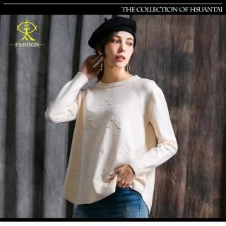 【玄太】寬鬆圓領特色織紋針織上衣(杏)