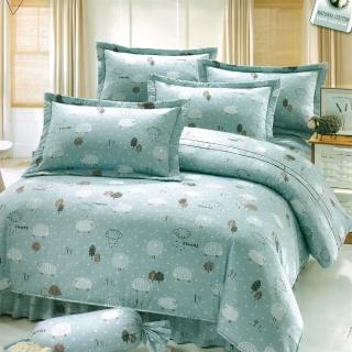 【Carolan】精梳棉 五件式兩用被床罩組綿綿情意-藍(加大)