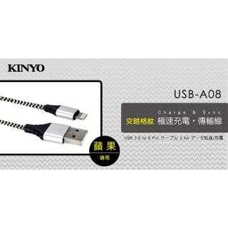 【KINYO】蘋果8pin交錯格紋極速充電傳輸線