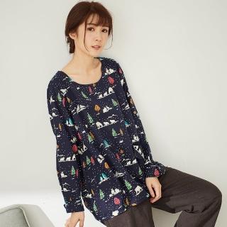 【慢。生活】雪地小動物印花上衣-F(粉紅/藍)