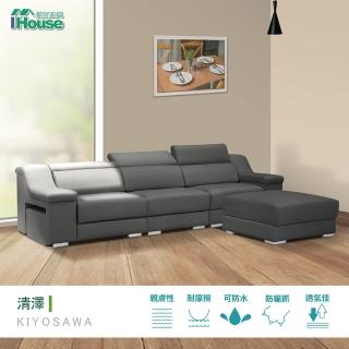 【IHouse】清澤 頭枕坐墊多功能調整型貓抓皮L型沙發(沙發 貓抓皮 多功能)