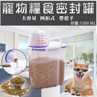 【aiken 艾肯】2入組 新一代四扣式 寵物糧食密封罐 手提有蓋帶量杯(密封儲物罐 收納罐 1.5kg*2入)