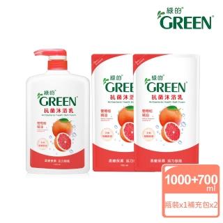 【Green綠的】抗菌沐浴乳-葡萄柚精油1000mlX1瓶裝+700ml補充包X2包(超值組)