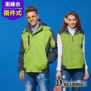 【Dreamming】戶外機能防風雨保暖三穿連帽衝鋒外套(綠灰)