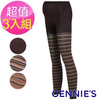 【Gennies 奇妮】3入組*厚棉孕婦專用九分褲襪(深咖條紋/棕咖條紋/素色咖啡GM41)