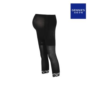 【Gennies 奇妮】彈性薄蕾絲孕婦專用七分褲襪(黑GM43)