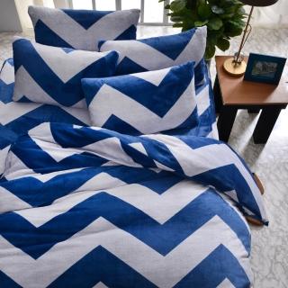 【Grace Life】法蘭絨四件式被套床包組 簡約洋流(加大)