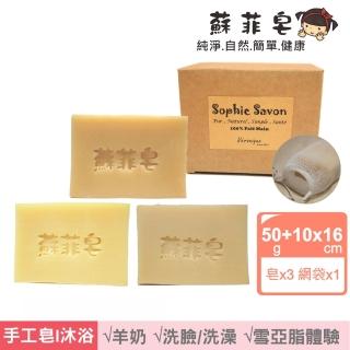 【Sophie Savon 蘇菲皂】雪亞脂3入體驗組 +網袋(羊奶皂/50g小皂3入 潤膚/保濕/滋養 MIT手工皂)