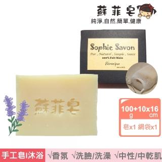 【Sophie Savon 蘇菲皂】薰衣草純露香氛皂 +網袋(香氛皂/純露香氛 中性/中乾肌 MIT手工皂)