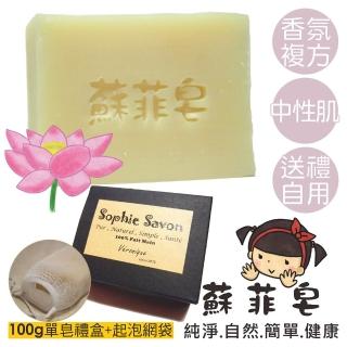 【Sophie Savon 蘇菲皂】蓮花複方香氛皂 +網袋(香氛皂/複方香氛 中性肌 MIT手工皂)