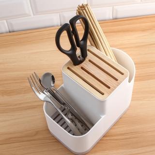 【E.City】多功能可瀝水刀具木質餐具3格收納架(底部瀝水孔設計)