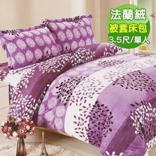 【Green 綠的寢飾】法蘭絨植物花卉三件式床包被套組發財樹(單人)