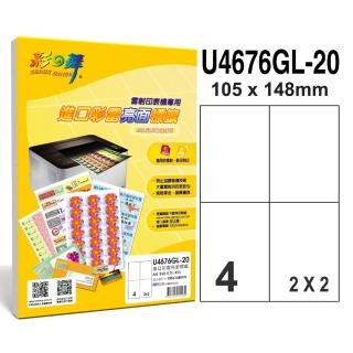 【彩之舞】進口彩雷亮面標籤A4-4格直角-2x2/20張/包 U4676GL-20x3包(貼紙、標籤紙、A4)