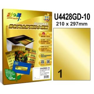 【彩之舞】進口雷射黃金膠質防水標籤A4-1格直角/10張/包 U4428GD-10x2包(貼紙、標籤紙、A4)