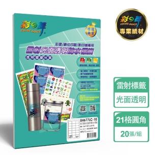 【彩之舞】進口雷射光面透明防水標籤 21格圓角-3x7/10張/包 U4677LC-10*2包(貼紙、標籤紙、A4)