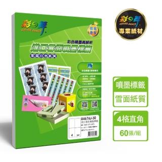 【彩之舞】進口雪面噴墨標籤A4-4格直角-2x2/30張/包 U4676J-30x2包(貼紙、標籤紙、A4)