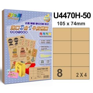【彩之舞】進口3合1牛皮標籤A4-8格直角2x4/50張/包 U4470H-50x3包(A4、貼紙、標籤紙)