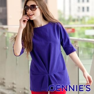 【Gennies 奇妮】舒適棉質七分袖上衣(紫/黑C3Y04)