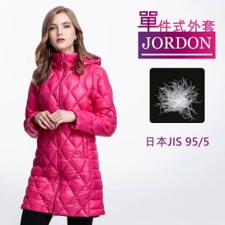【JORDON 橋登】菱格輕量 JIS95/5 長版羽絨外套(桃紅)