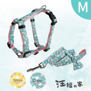 【HELLO KITTY】H型胸背+牽繩 M號 2件組(和風款 薄荷綠/奶油黃)