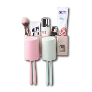 小麥牙刷牙膏架帶自動擠牙膏神器組 兩口組 適用1至2人(小麥 牙刷 牙膏 自動擠牙膏)