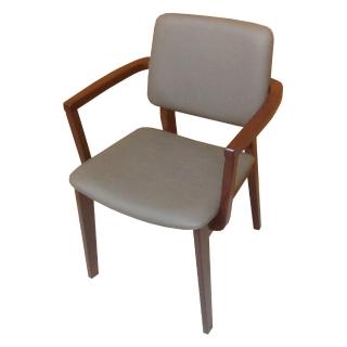 【AS】Donna胡桃色扶手灰皮面實木餐椅-48x54x80cm