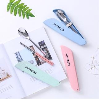 【愛家樂】日韓熱銷正304不鏽鋼+環保小麥嚴選湯匙/筷子餐具組 新升級扇形靜音開合設計安全衛生(可選幸運色)