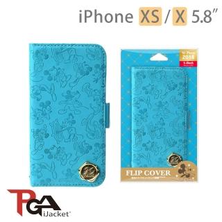 【iJacket】iPhone XS/X 5.8吋 迪士尼 金箔壓花 皮套(米奇-藍)