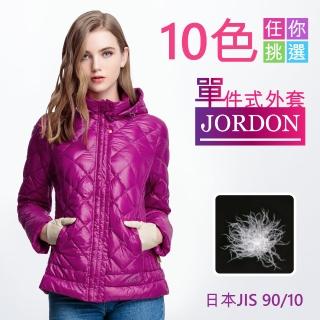 【JORDON 橋登】極輕俐落連帽羽絨夾克(紫紅)