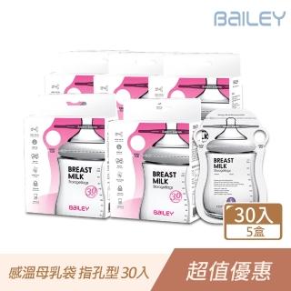 【韓國BAILEY貝睿】感溫母乳袋 指孔型30入 5盒(母乳儲存袋 母乳保鮮袋 母乳冷凍)