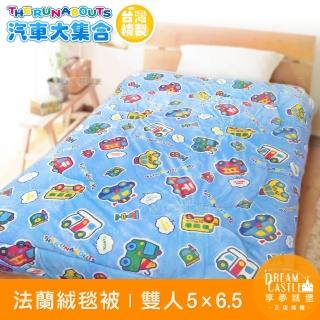 【享夢城堡】卡通法蘭絨暖暖毯被150x195cm(小汽車 汽車大集合-藍)