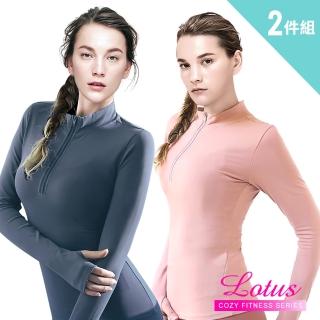 【LOTUS】超彈緊身微立領拉鍊瑜珈運動長袖上衣-兩件組(柔瑰粉+延禧藍 M-L)