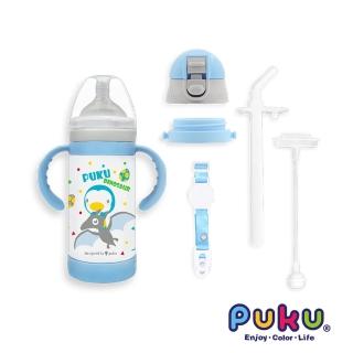 【PUKU藍色企鵝】PUKUmon不鏽鋼保溫奶瓶學習套組240ML