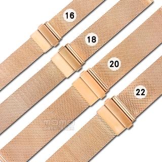 【Watchband】16.18.20.22mm / DW代用 各品牌通用 透亮 輕巧耐用 米蘭編織不鏽鋼錶帶(玫瑰金)