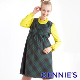 【Gennies 奇妮】格紋拼接背心洋裝(綠/咖G2W24)