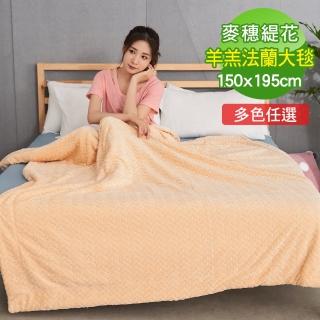 【BELLE VIE】經典豐盈麥穗緹花雙面羊羔法蘭絨毯(150x195cm-兩色任選)