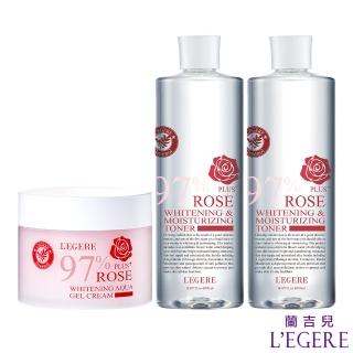 【LEGERE 蘭吉兒】97玫瑰淨白防護精華露500mlX2+97玫瑰植萃淨白水凝霜200gX1