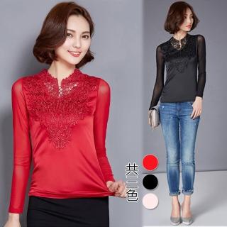 【Alice 韓系館】秋冬超大彈力法式蕾絲上衣 XL-3XL(共2色)