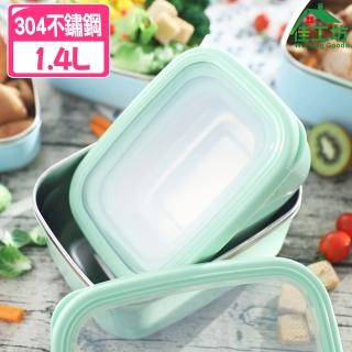 【佳工坊】304不鏽鋼北歐長方型附蓋保鮮隔熱碗(1.4L)