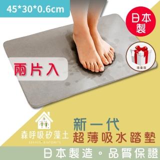 【森呼吸矽藻土】新一代超薄吸水踏墊-礦灰/精緻禮盒版*兩片入(耐髒汙 吸水 踏墊 超薄 小尺寸 日本製)