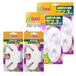 【Ez Bond】無痕大力掛勾組(10入掛勾+牙刷刮鬍刀架x2+輔助貼片x6枚)