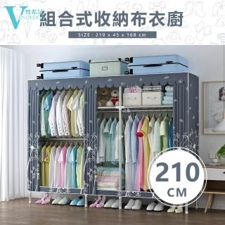 【VENCEDOR】加寬加大管徑窗簾式組合布衣櫥-2.1米(5色可選 210公分超大衣櫥-1入)