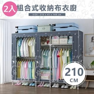 【VENCEDOR】2.1米加寬加大2.5管徑窗簾式組合布衣櫥(5色可選 210公分超大衣櫥-2入)
