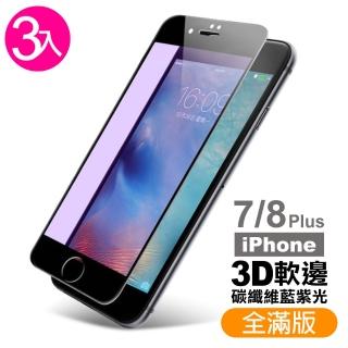 iPhone 7 8 Plus 保護貼滿版藍光玻璃鋼化膜手機(3入 7Plus保護貼 8Plus保護貼)